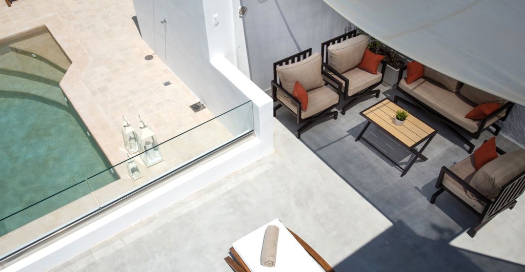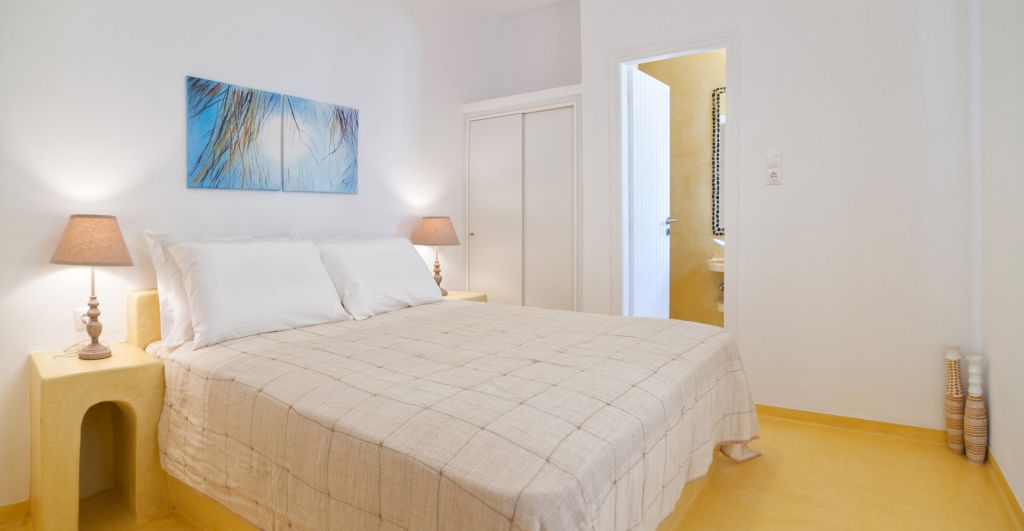 Το Διαμέρισμα διαθέτει δύο ξεχωριστά υπνοδωμάτια, το καθένα με ένα χτιστό queen size κρεβάτι και ιδιωτικό μπάνιο με ντους ψιλής βροχής, καθιστικό με χτιστό καναπέ και μια μεγάλη ιδιωτική βεράντα με θέα στην πισίνα.