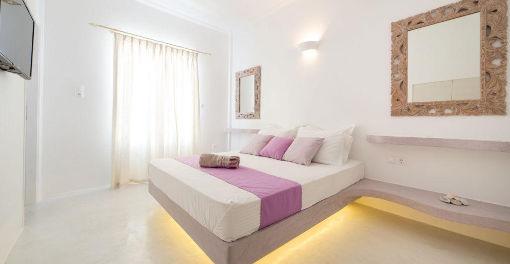 Παραμένοντας πιστά στο μοναδικό στυλ των Κυκλάδων, κάθε λεπτομέρεια των Standard Δίκλινων δωματίων αντικατοπτρίζει την κληρονομιά της περιοχής. Διακοσμημένα με ουδέτερα χρώματα και υφάσματα, αποτελούνται από υπνοδωμάτιο με ένα queen size κρεβάτι, μπάνιο με ντους και ιδιωτικό μπαλκόνι.